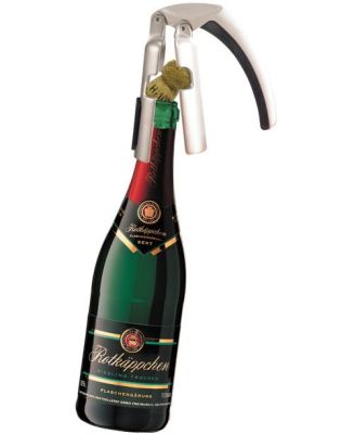 Пробка фиксируется в специальном отверстии между двумя концами и одним движением извлекается из горлышка.