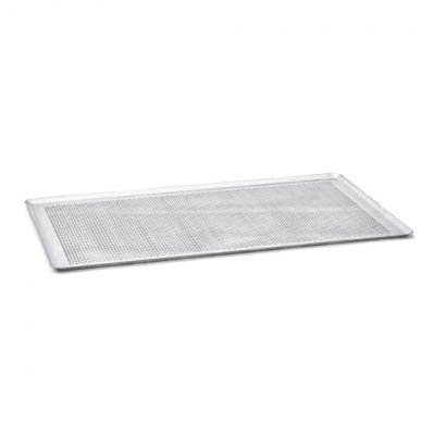 Противень изготовлен из перфорированного алюминия толщиной 1,5 мм (перфорация диаметром 3 мм).