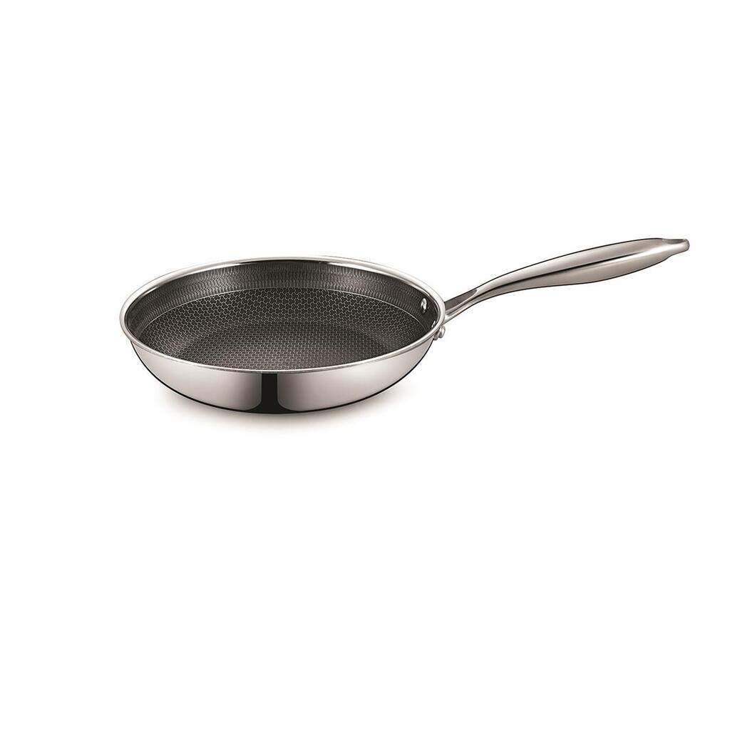Нерж. сталь "TRI-PLY" с уникальной архитектурой рабочей поверхности нанесенной лазером в виде рельефного сетчатого узора, последующим травлением и нанесением антипригарного покрытия. Такая поверхность создает невидимый слой между едой и поверхностью сковороды, снижает образование масляного дыма и отделяет водяной пар от продукта и прекрасно защищает сковороду от царапин. Важно! Перед первым использованием сковороду нужно вымыть с моющим средством, затем налить 2/3 воды от объема и довести до кипения на среднем огне, подождать 5 минут, выключить нагрев и оставить остывать естественным образом еще на 5 минут. Затем смажьте внутреннюю поверхность сковороды растительным маслом (или любым жиром) и нагревайте ее на среднем огне, 1-2 минуты. После дайте остыть и очистите ее водой. При дальнейшем использовании, необходимо свести к минимуму сильное нагревание, так как сковорода обладает очень сильной теплопроводностью. Это снизит прилипание продуктов к сковороде и предотвратит подгорание.
