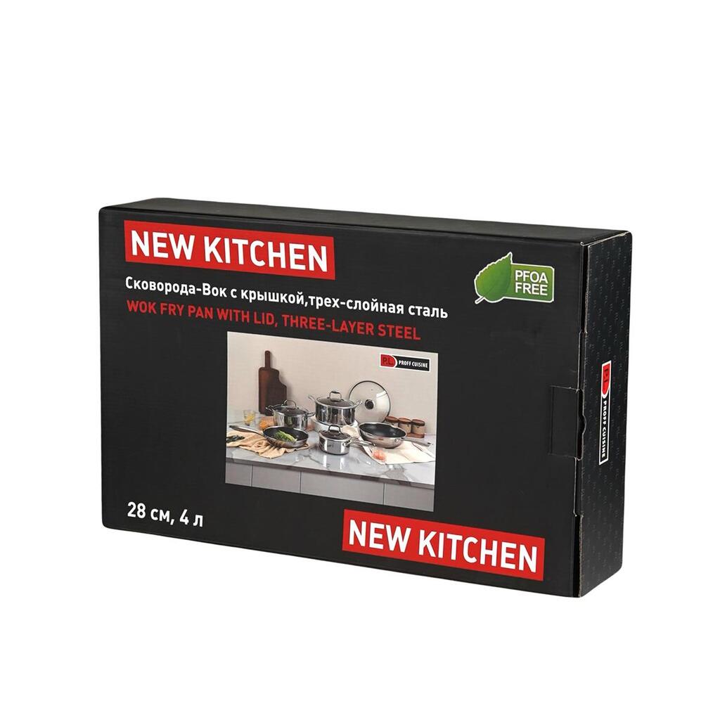 Сковорода упакована в индивидуальную цветную коробку 49*31*11,3 см. Доп размеры: Диаметр дна 16,5 см, Высота сковороды без крышки 8,5 см, Длина сковороды с ручкой 51 см. Длина ручки 22,5 см.