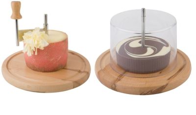 Рубанок для сыра и шоколада на деревянной подставке от APS с пластиковой крышкой.