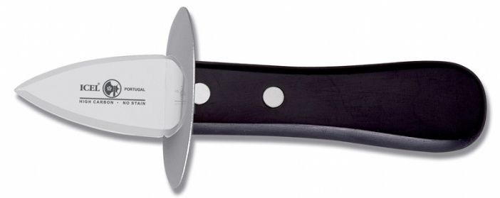 Специальный нож для открывания устриц Icel имеет заточенное лезвие, которое достаточно легко вставляется в сочленение створок.
