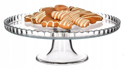 Стеклянная подставка на ножке для эффектной подачи к столу тортов и других десертов.