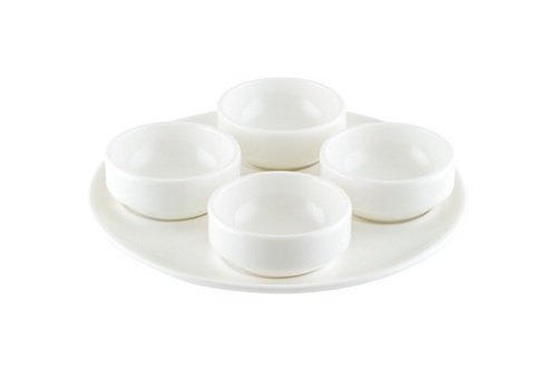 Блюдо белого цвета со сливочным оттенком.