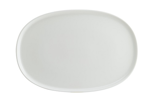 Блюдо белого цвета со сливочным оттенком.