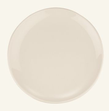 Тарелка белого цвета со сливочным оттенком.