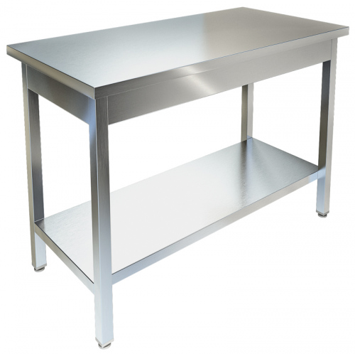 Материал столешницы: Нерж. сталь AISI 304; Материал каркаса: Нерж. сталь AISI 430; Усиленная столешница: Да; Полка: Сплошная; Исполнение: Сборный; Длина, мм: 700; Ширина, мм: 600; Высота, мм: 850;