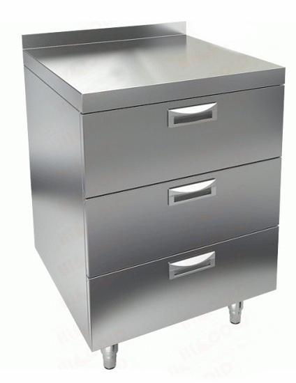 Материал каркаса: Нерж. сталь AISI 430; Материал столешницы: Нерж. сталь AISI 430; Борт: Да; Количество ящиков: 3; Длина, мм: 600; Ширина, мм: 600; Высота, мм: 800;